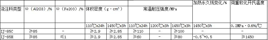 表6爐底用高鋁質(zhì)耐火澆注料性能指標